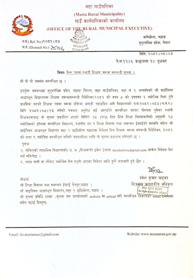 रिक्त पदमा स्थाई शिक्षक सरुवा सम्बन्धि सूचना