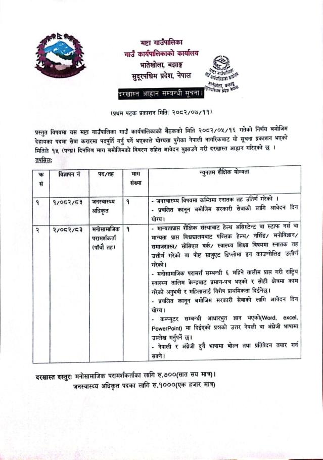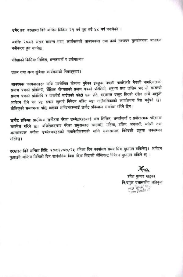सेवामा करार कर्मचारी आवश्यकता सम्बन्धि सूचना