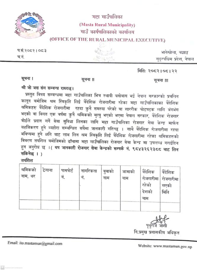 रोजगार सेवा केन्द्रको सूचना