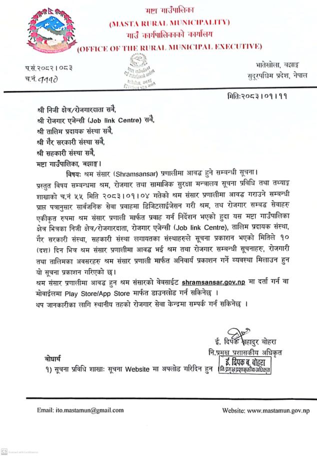 श्रम संसार प्रणालीमा आबद्ध हुने सम्बन्धि सूचना