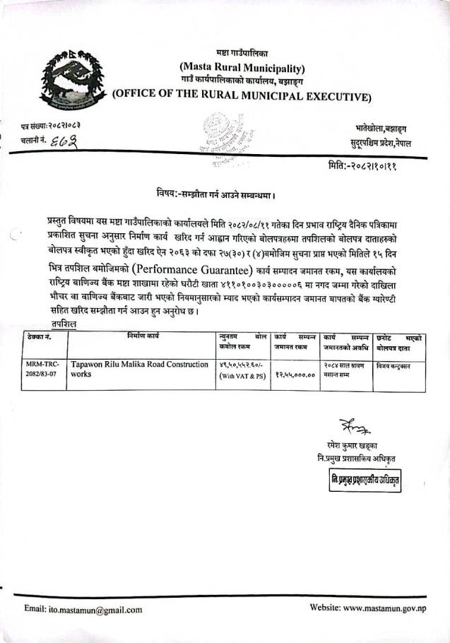 करार कर्मचारीको आबश्यकता सम्बन्धि सूचना