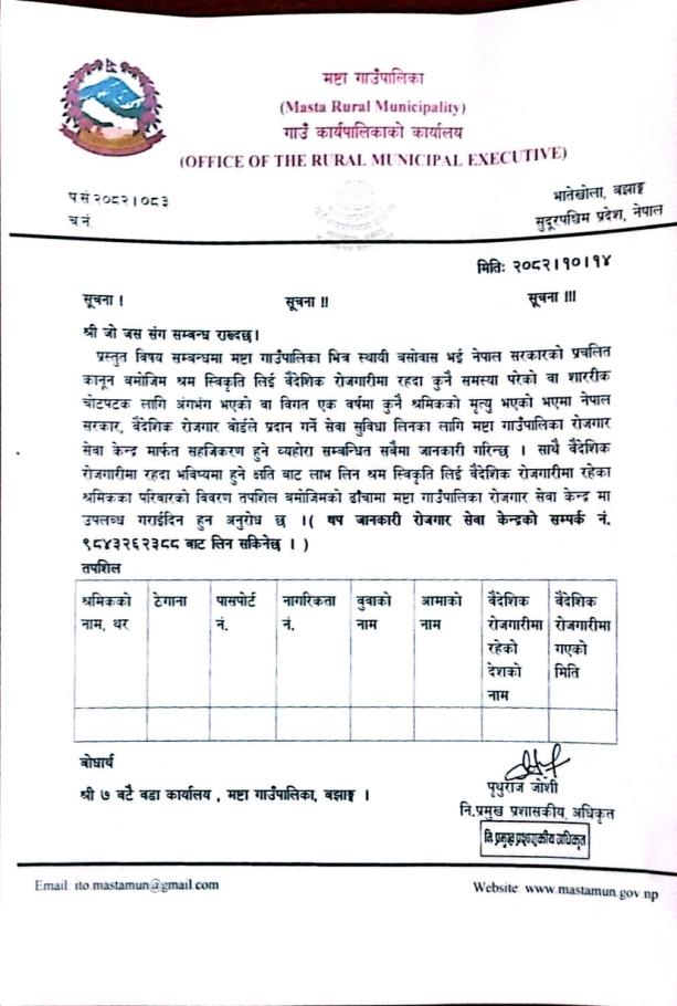 करार कर्मचारीको आबश्यकता सम्बन्धि सूचना